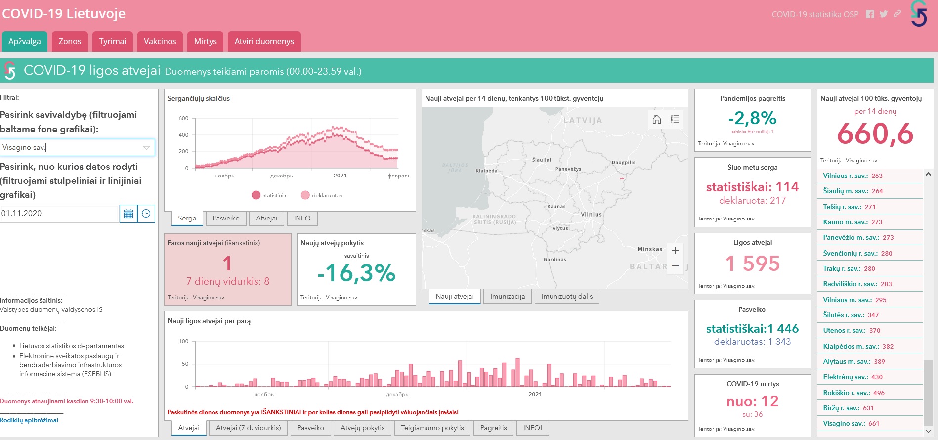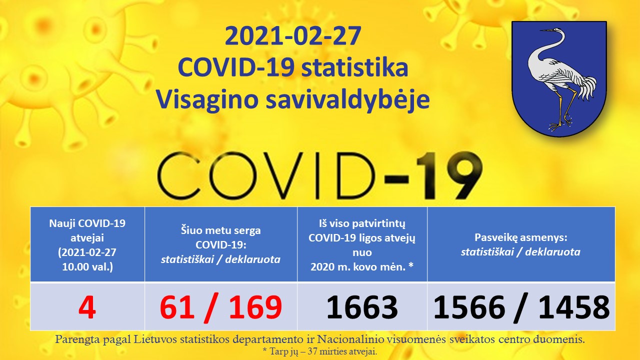2021-03-04: COVID-19 situacija Visagine (Statistikos departamentas praneša, kad paskutinės dienos duomenys yra IŠANKSTINIAI ir per kelias dienas gali pasipildyti vėluojančiais įrašais)