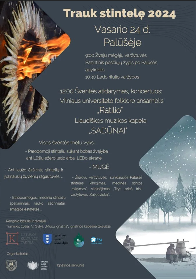 Tik Palūšėje stintas traukia medinės bobos, tik čia ant ledo vyksta tokios azartiškos žvejų mėgėjų varžybos. Šventėje mirgės ir klegės turtinga mugė bei galybė pramogų mažiems ir dideliems: kvies pėsčiųjų žygis, etniniai žaidimai, sunkiausios Palūšės stintos kilnojimo, slidinėjimo „Trys prieš tris“, „Kalk cvieką“ varžytuvės, ledo ritulio varžybos, Krašto apsaugos savanorių pajėgų estafetės, stintelių ir įvairiausių žuvienių ragautuvės. Širdį glostys ir kojas kilnos folkloro ansamblio „Ratilio“ ir kapelijos „Samanyčia“ muzikavimas. Tradiciškai šventę papuoš skulptoriaus Alberto Danilevičiaus sukurta nendrinė scenografija – erdvinis paveikslas „Lūšių laumės“. Skaitykite daugiau: https://www.lrytas.lt/gamta/zeme/2024/02/06/news/vasario-24-d-visi-keliai-veda-i-paluse--30425662