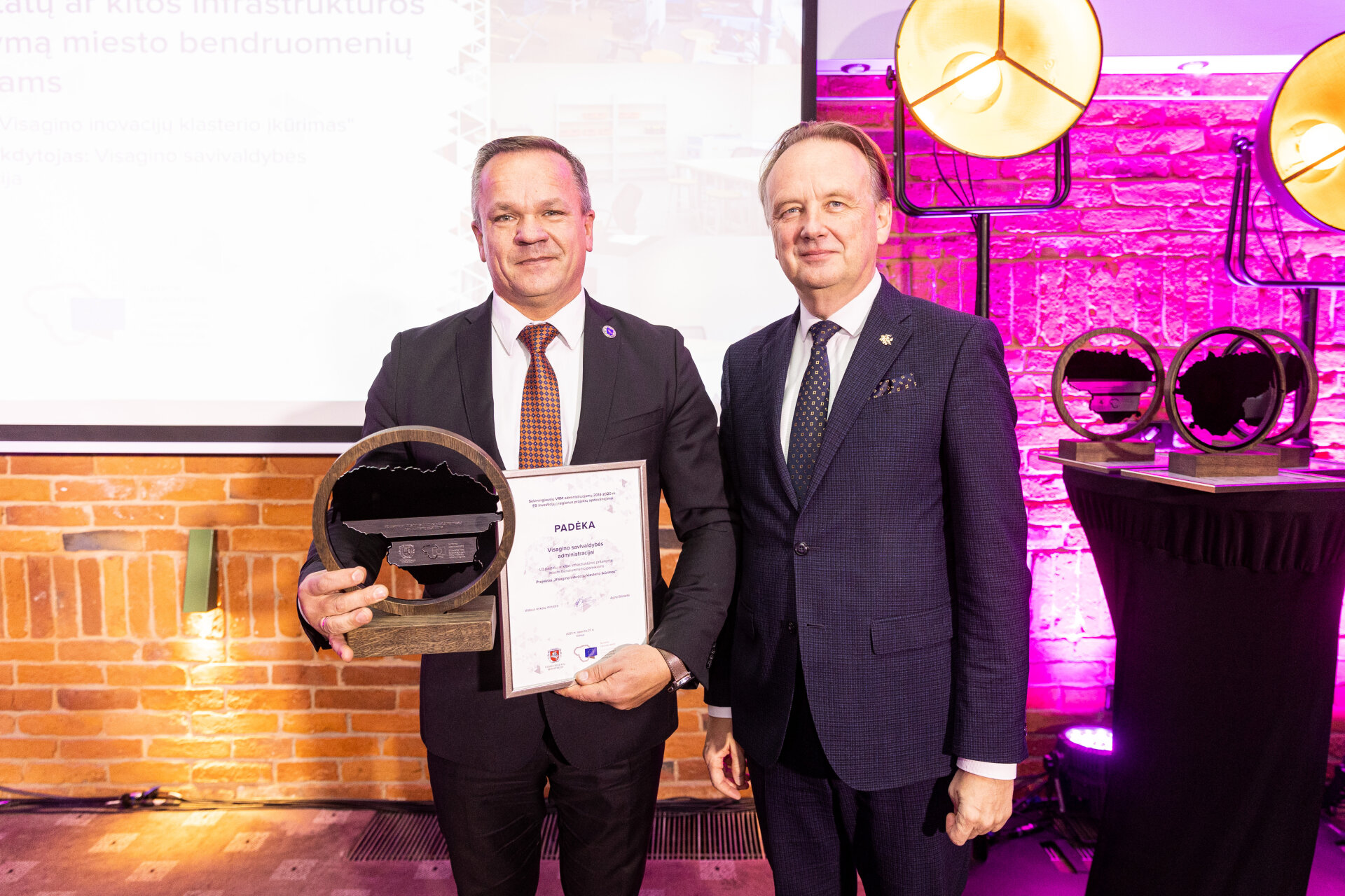 Vakar, lapkričio 27 dieną, Vilniuje įvyko sėkmingiausių Vidaus reikalų ministerijos (VRM) administruojamų 2014-2020 m. ES investicijų į regionus projektų apdovanojimai. Vienas iš apdovanotųjų – Visagino savivaldybės įgyvendintas Nr. 07.1.1-CPVA-V-906-01-0008 „Visagino inovacijų klasterio įkūrimas“ projektas. VRM viceministras Arnoldas Abramavičius įteikė apdovanojimą savivaldybės merui Erlandui Galaguz.
