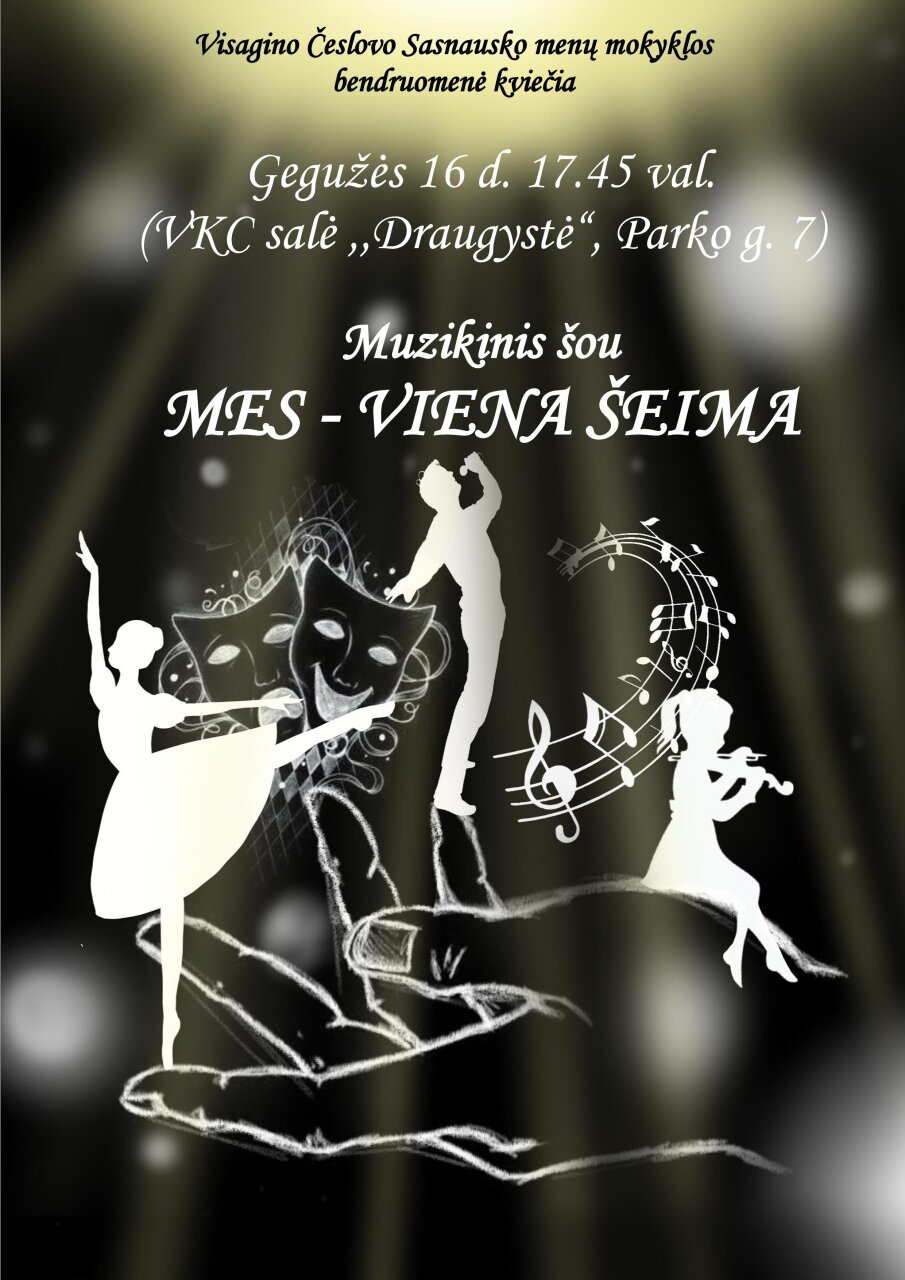 Visagino Česlovo Sasnausko menų mokyklos bendruomenė kviečia visus į įspūdingą muzikinį šou „Mes – viena šeima“, kuris įvyks š. m. gegužės 16 d. 17.45 val. VKC „Draugystės“ salėje, Parko g. 7.
