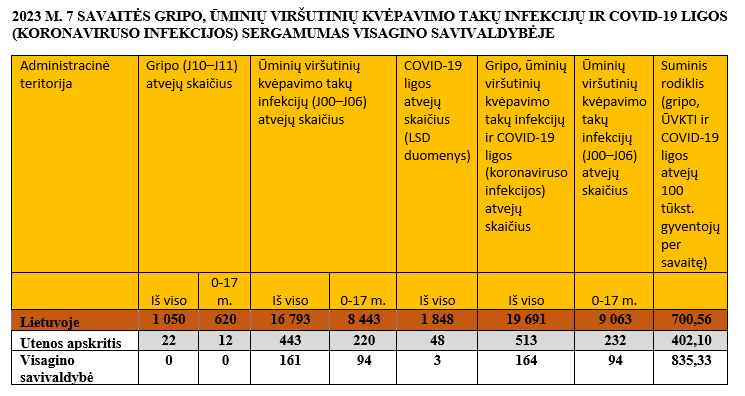 7 savaitės duomenys: gripo ir ūminių viršutinių kvėpavimo takų infekcijų atvejai, sergamumas COVID-19 liga