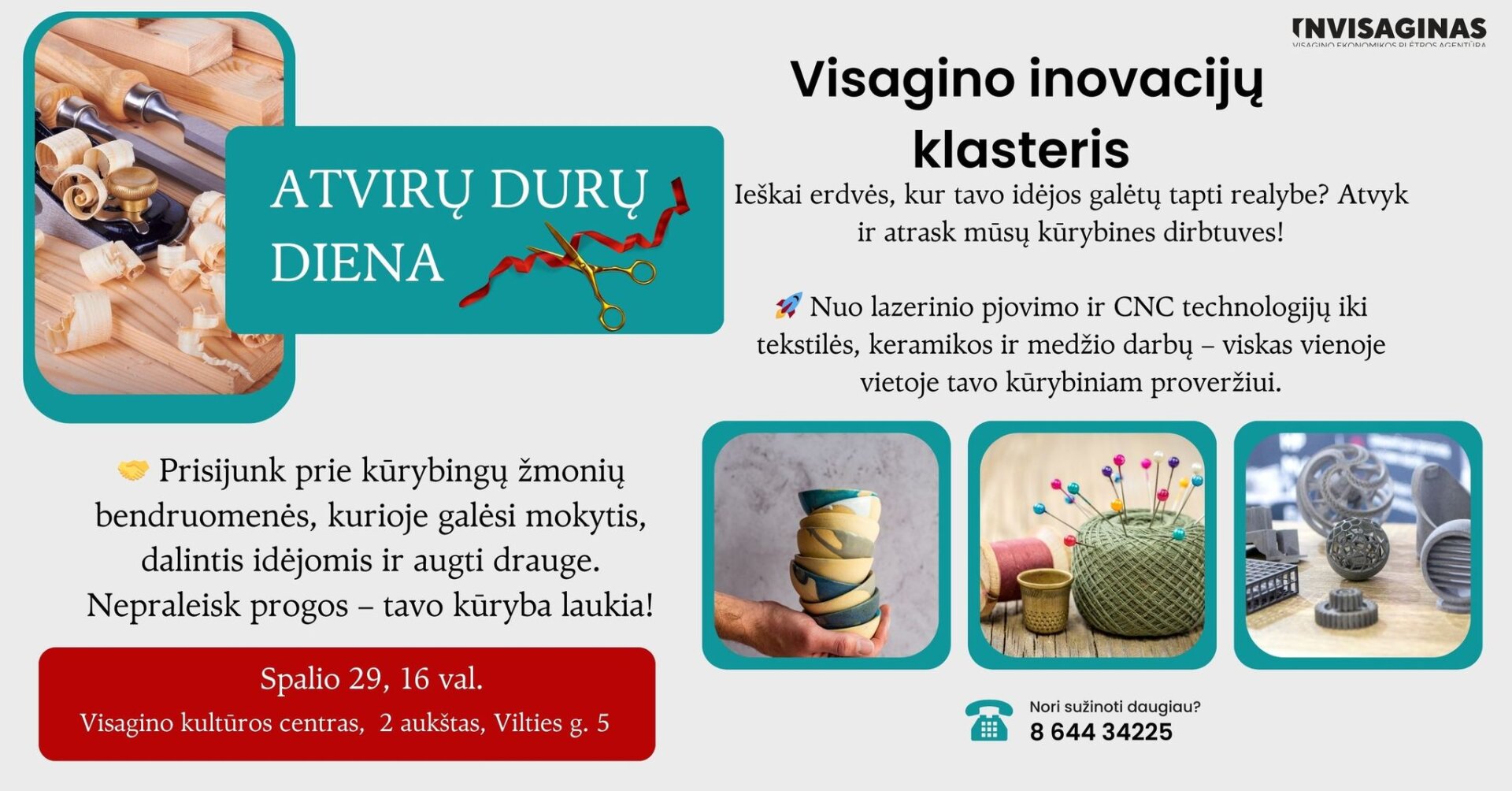 Renginio metu pristatysime mūsų dirbtuves, tokias kaip tekstilės, medžio apdirbimo, keramikos bei lazerinio pjovimo ir CNC staklių naudojimo galimybes.