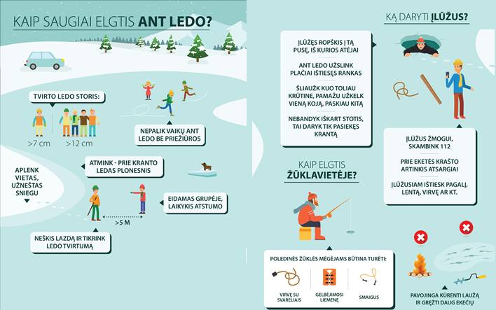 Priešgaisrinės apsaugos ir gelbėjimo departamento prie Vidaus reikalų ministerijos Panevėžio priešgaisrinės gelbėjimo valdybos Visagino priešgaisrinė gelbėjimo tarnyba primena gyventojams, kad paspaudus šaltukui, geriausia nerizikuoti ir nevaikščioti ant užšalusių vandens telkinių, tačiau, kaip taisyklė, kasmet užsitraukus ledui čia tuoj pat renkasi žvejai, neretai pramogų ieško ir vaikai. Pramogaujantiems ant ledo būtina žinoti kokie pavojai jų tyko ir kaip išsigelbėti ar išgelbėti kitus įlūžus: