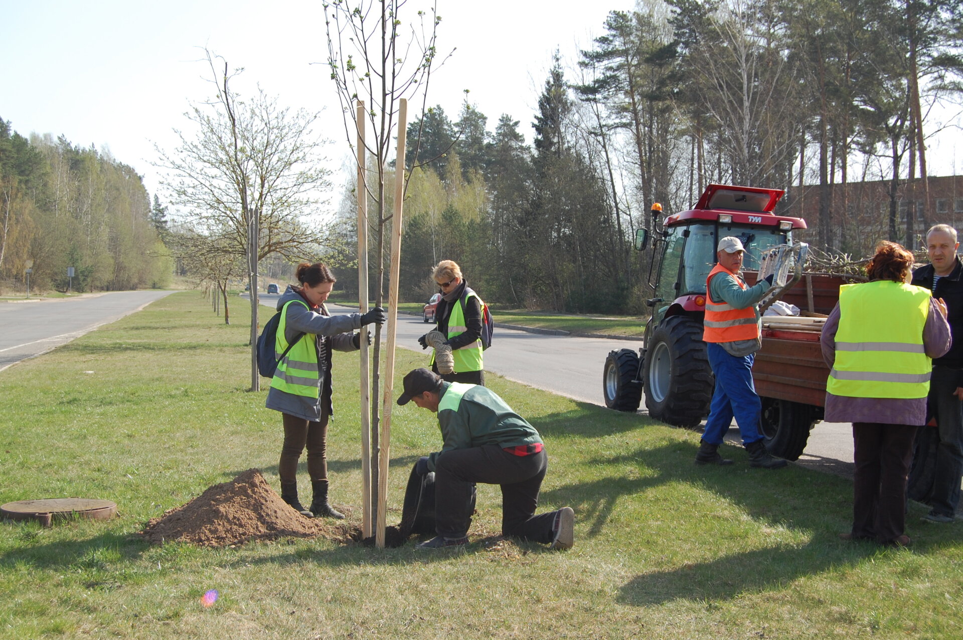 Šiandien Aplinkos tvarkymo skyriaus darbuotojai pradėjo medelių sodinimo darbus.