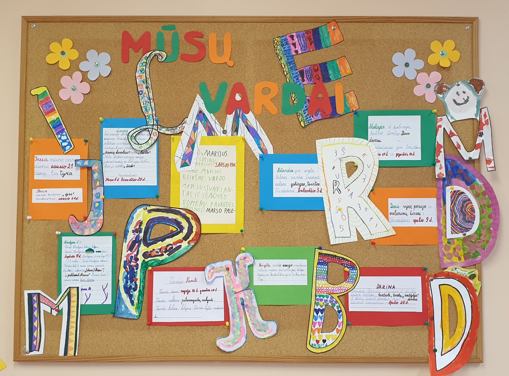 Daug gerų emocijų mokiniams suteikė tema apie vardus. Lietuvių kalbos pamokų metu vaikai aiškinosi, kodėl kiekvienas žmogus turi vardą, kodėl į žmogų kreipiamasi vardu. Daug dėmesio mokiniai skyrė lietuviškų vardų reikšmės aiškinimui. Vėliau kiekvienas pasidomėjo, ką reiškia jo vardas, kada švenčiamas vardadienis. Dalis mokinių džiaugėsi, kad jų gyvenime atsirado nauja šventė – vardadienis. Veiklos pabaigoje visą surinktą informaciją antrokai meniškai įformino klasės stende „Mūsų vardai“. Stendą papuošė dailės ir technologijų pamokoje pagamintos pirmosios vardų raidės.