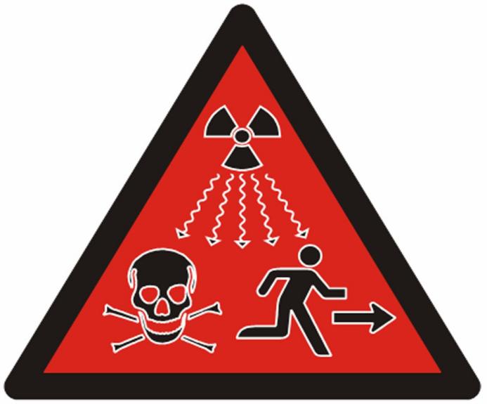 Siekdamos atkreipti darbuotojų ir visų žmonių dėmesį apie jonizuojančiosios spinduliuotės galimą žalingą, net mirtiną poveikį, 2007 m. Tarptautinė atominės energetikos agentūra (TATENA) ir Tarptautinė standartizacijos organizacija (ISO) pristatė papildomą ženklą, sukurtą taip, kad jis būtų visuotinai suprantamas kaip „Pavojus – bėkite – nelieskite!“.