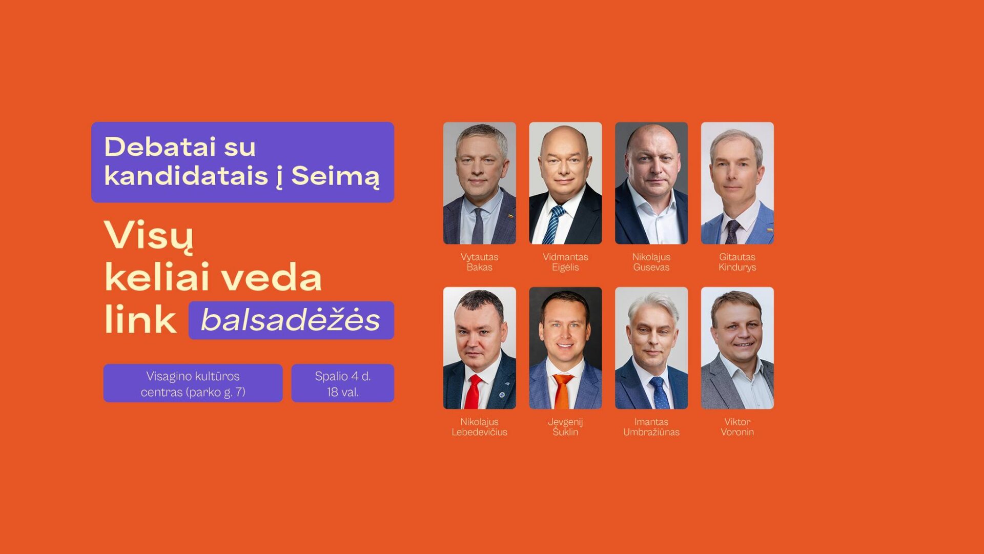 Nalšios šiaurinės vienmandatės apygardos debatai vyks spalio 4 dieną, 18 valandą, Visagino kultūros centro Draugystės salėje (Parko g. 7).