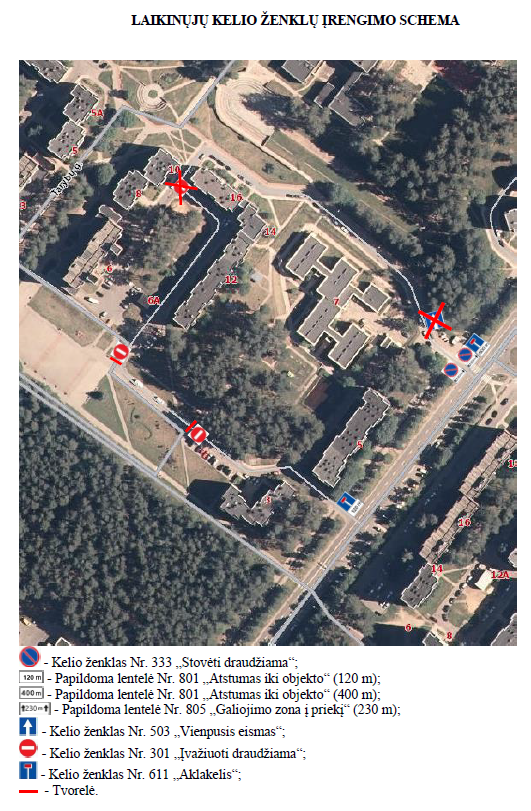 Dėl šios priežasties automobilių eismas šioje atkarpoje bus ribojamas pagal pridedamą laikinųjų kelio ženklų schemą.
