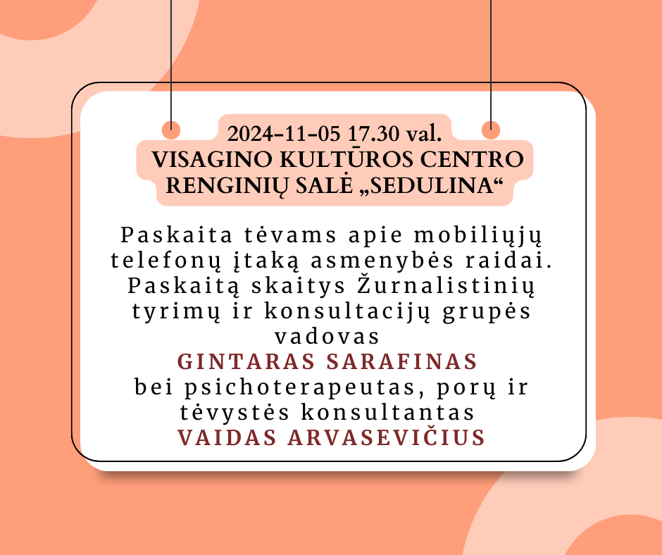 Paskaita tėvams apie mobiliųjų telefonų įtaką asmenybės raidai