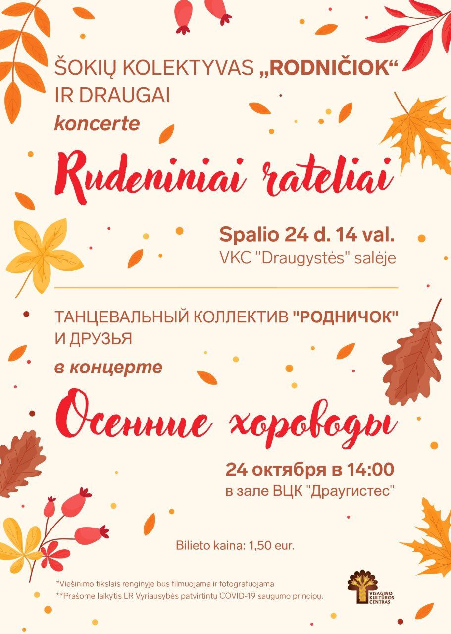 Kviečiame į ilgamečio šokių kolektyvo „Rodničiok“ (vadovė Galina Chutorskich) ir jo draugų – mokytojos ekspertės Vitos Pimpienės auklėtinių – koncertą.