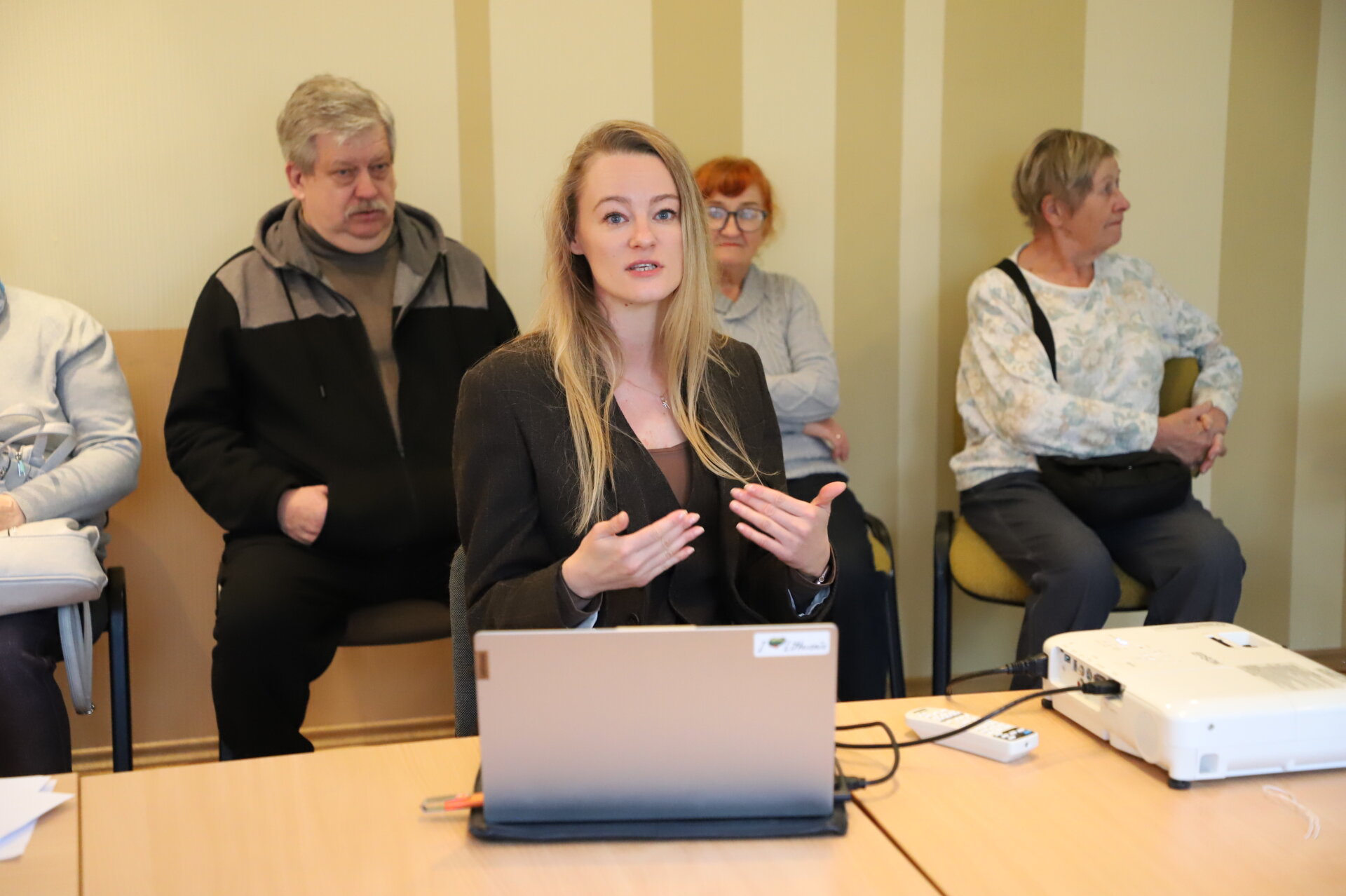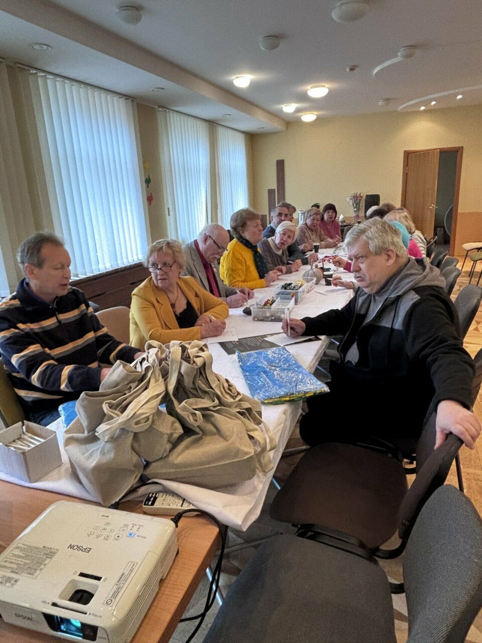 Pirmojoje dalyje dalyviai klausėsi informatyvios paskaitos apie atliekų rūšiavimo principus. Senjorai aktyviai domėjosi, kaip teisingai rūšiuoti skirtingas atliekas, kokie yra jų perdirbimo procesai, kur keliauja surinktos medžiagos. Buvo užduota daug klausimų, dalyviai dalijosi savo patirtimi ir išsakė pastebėjimus.