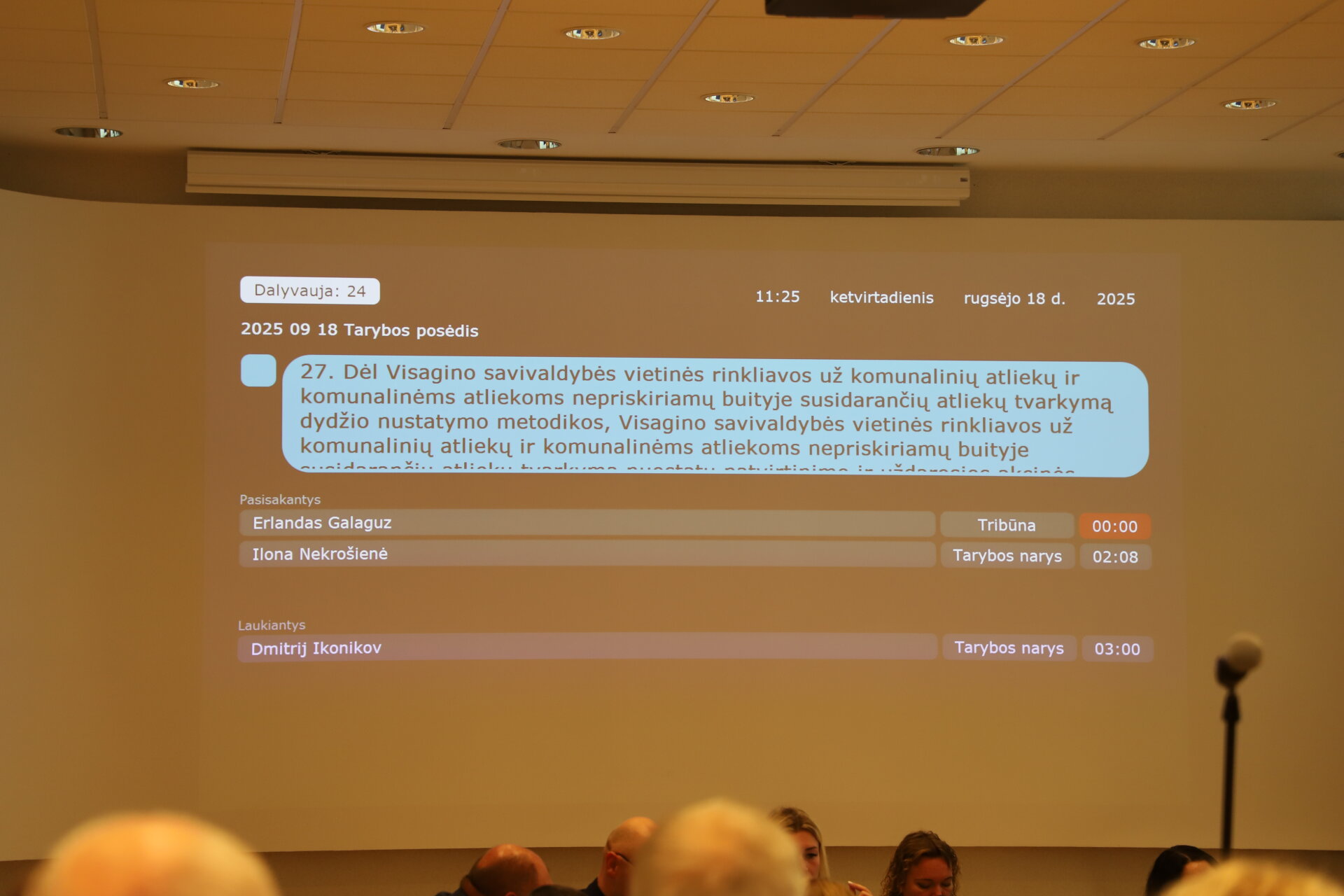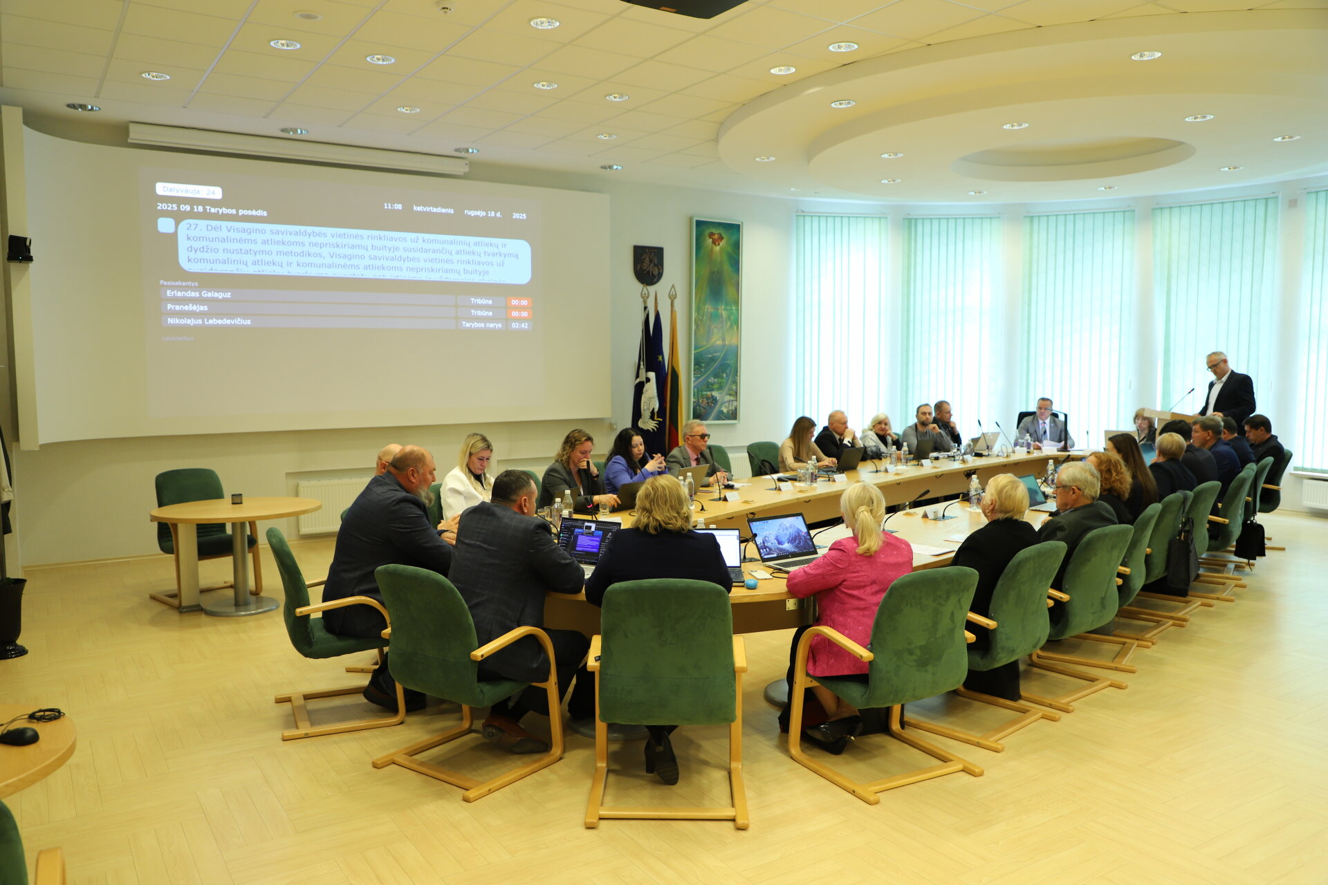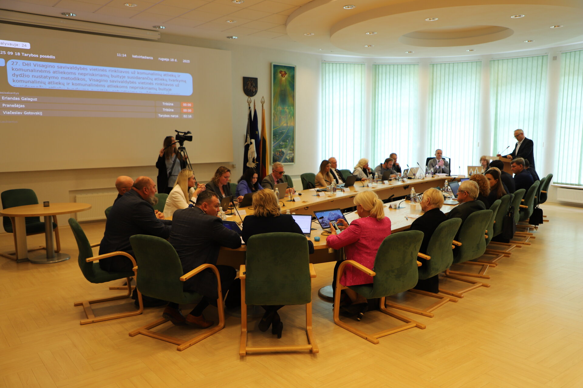 Šiuo metu Visagino savivaldybės posėdžių salėje (Parko g. 14) vyksta septintasis 2025 m. tarybos posėdis. Posėdžio darbotvarkėje numatyta 27 klausimai.