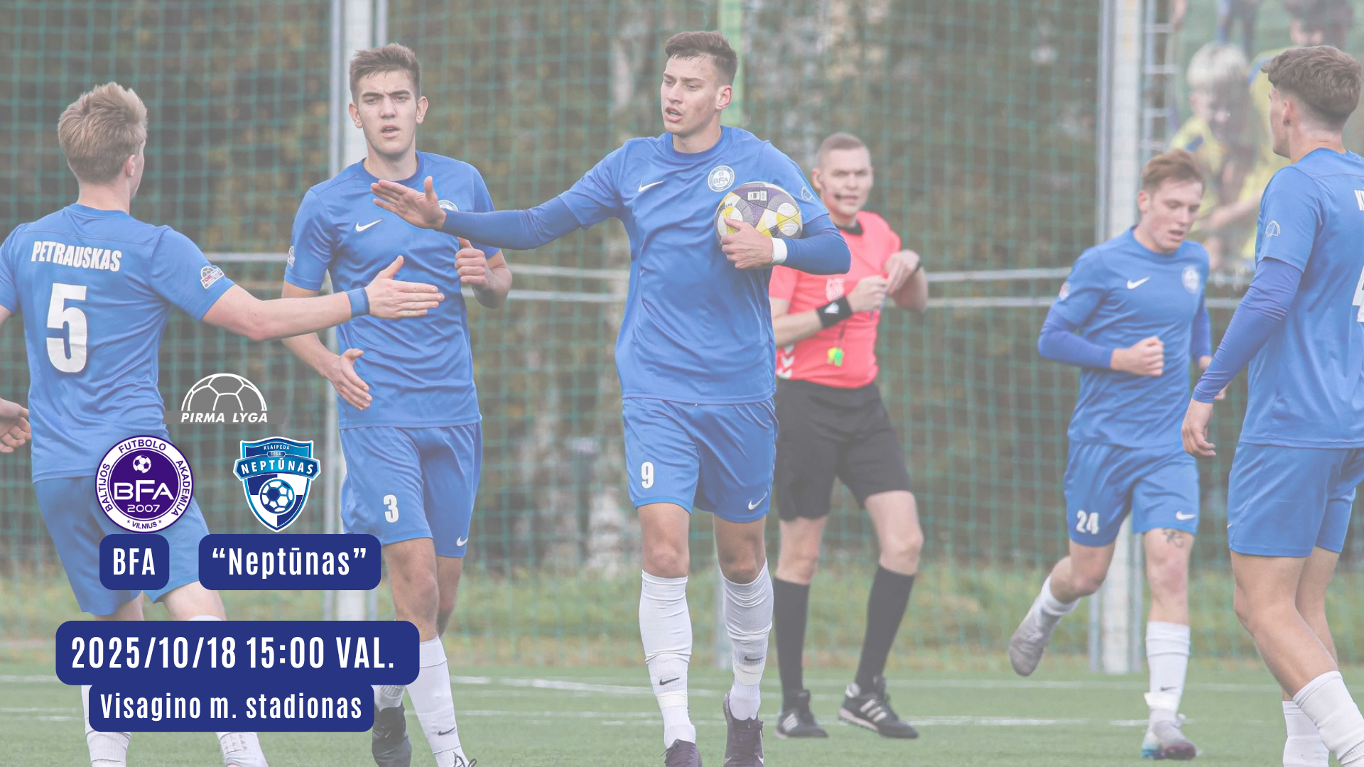 Spalio 18 d. Visagino m. stadione David Muslera Rodriguez, Dmitrijaus Kartašovo ir Pavelo Leuso vedama BFA (5 vieta, 48 taškai) antrą kartą šiame sezone susikaus su Klaipėdos „Neptūnu" (2 vieta, 55 taškai). Šiose rungtynėse spręsis, ar BFA pavyks išsaugoti vietą TOP5. Pirmasis susitikimas Klaipėdoje baigėsi pralaimėjimu 0:2 (0:1). BFA išgyvena nelengvą etapą, kai per 3 turus surinktas tik 1 taškas, todėl Visagine labai reikės visų didžiausio palaikymo!
