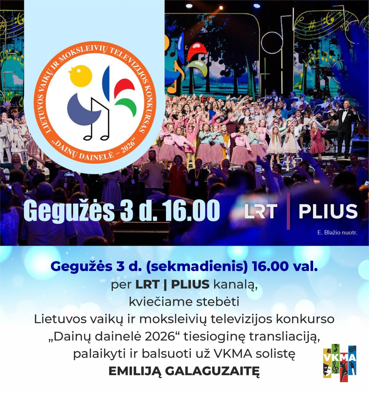 Kviečiame visus stebėti bei aktyviai palaikyti Visagino dainininkę Nacionalinės Lietuvos radijo ir televizijos koncerte, kuris bus transliuojamas tiesiogiai LRT | PLIUS kanalu gegužės 3 d. 16.00 val.