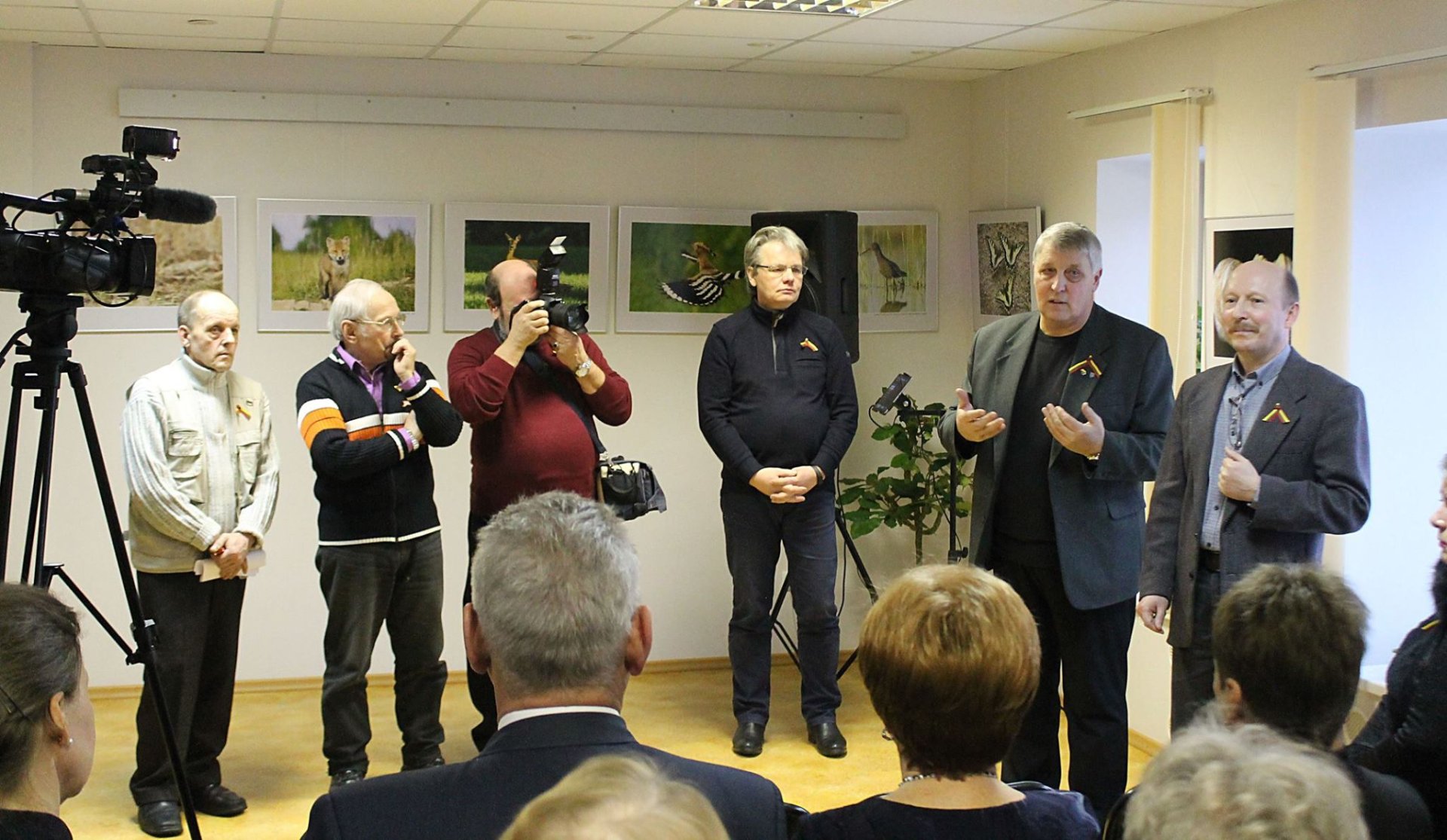 Visi pasidžiaugėme tėviškės grožiu Utenos apskrities fotografų klubo „Žalias skėtis“ parodoje, kuris šiemet mini savo veiklos dešimtmetį, jungia apie 40 Utenos apskrities fotografų, nuolat leidžia parodų katalogus, o svarbiausia - jame ir visaginietis Musatovas. Susirinkusieji pabendravo su klubo vadovu Rimantu Ūdru, kitais – P. Bilkiu, A. Jakštu, R. Kaupu, B. Šablevičiumi – apie grožio paieškas ir gamtą fotografuojančiojo darbo ypatumus. Pasidžiaugėme, kad dažnas kuriantis žmogus yra apdovanotas ne vienu talentu. Štai fotografuojantis A. Jakštas yra ir „Švenčionių krašto“ laikraščio redaktorius, ir dešimtąją poezijos knygą išleidęs žmogus. Tądien klausėmės jo eilių apie meilę tėvynei, moteriai, artimui. Jas lydėjo saksofonisto Stasio Montrimo muzikavimas. Visagino savivaldybės Švietimo, kultūros, sporto ir kalbos kontrolės skyriaus vedėja A. Sieliūnienė dėkojo atvykusiems fotografams ir šventinės aplinkos kūrėjams įteikdama savivaldybės administracijos suvenyrus, o bibliotekininkai jų rankas papuošė vėliavos spalvų primulių žiedais, susirinkusieji vaišinosi saldainiais, kurie taip pat atspindėjo tautinę atributiką.