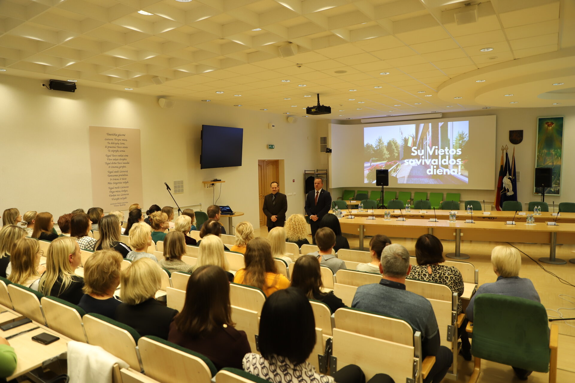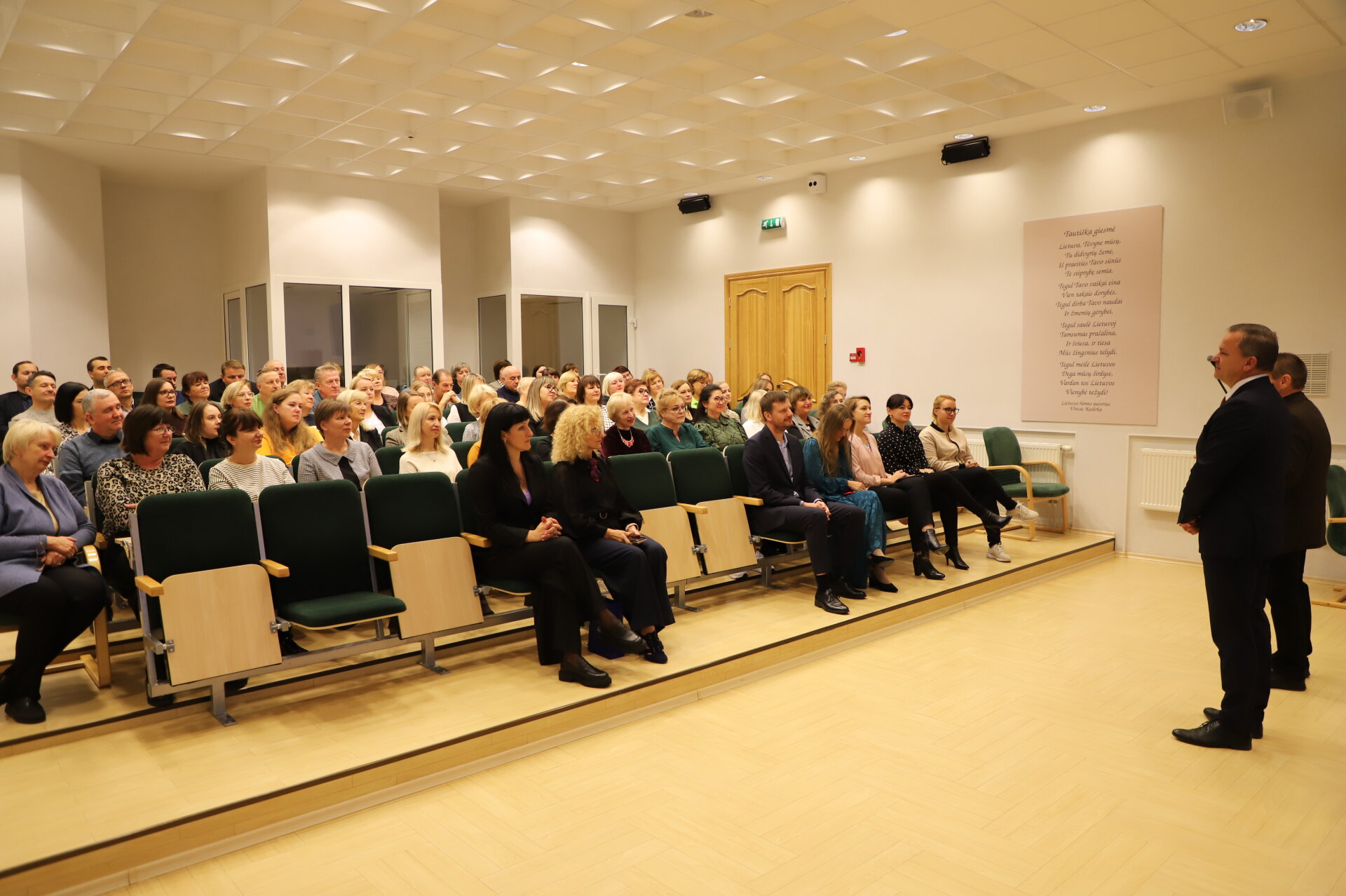 Šventinėje popietėje savivaldybės darbuotojams skirtos muzikinės staigmenos bei padėkota už atsakingą ir profesionalų darbą.