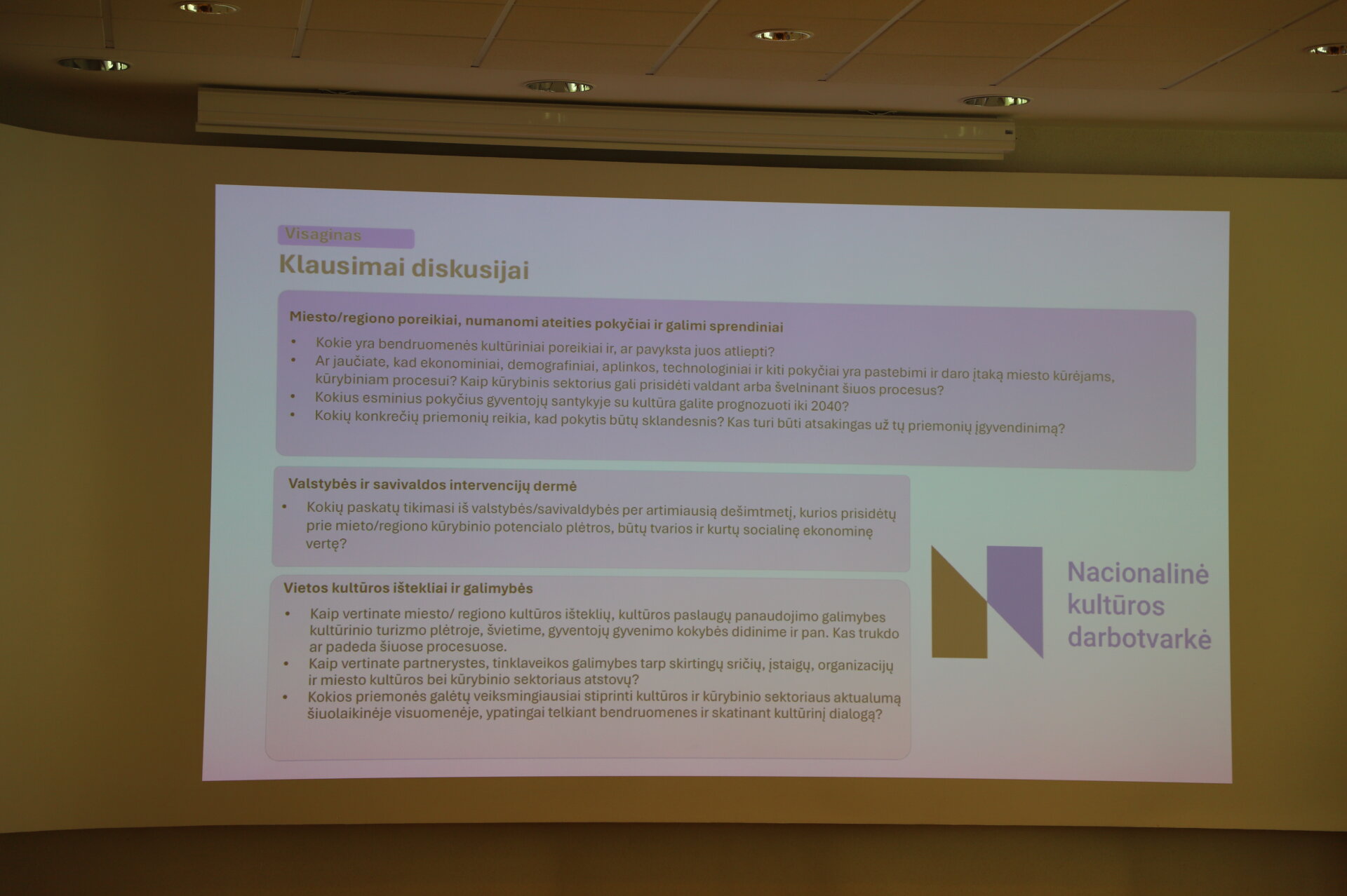 Ministrės vizito metu taip pat surengta atvira diskusija Visagino savivaldybės didžiojoje salėje, skirta Nacionalinės kultūros darbotvarkės dvidešimtmečiui ir ilgalaikių projektų įgyvendinimui. Joje dalyvavo Visagino kultūros įstaigų specialistai ir kaimyninių savivaldybių – Zarasų r. ir Ignalinos r. savivaldybių kultūros atstovai. Tikimasi, kad šis dialogas prisidės prie nuoseklaus kultūros sektoriaus stiprinimo ir dar didesnio bendruomenės įsitraukimo.