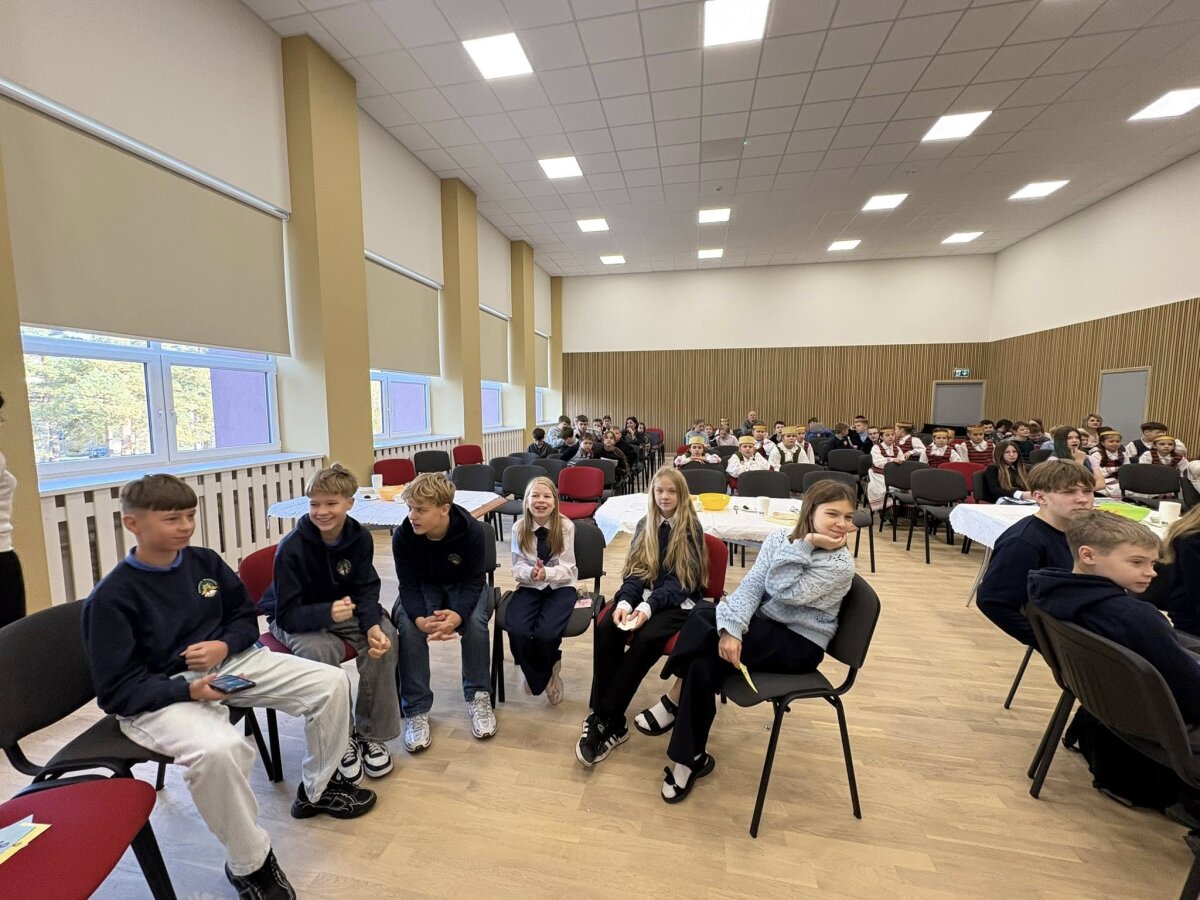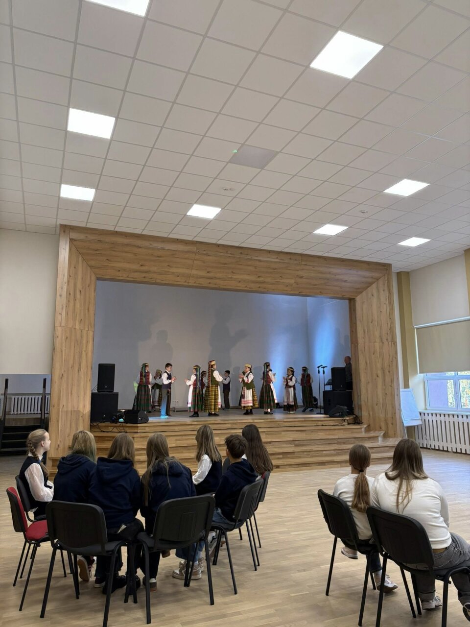 Rudenį įgyvendinant projektą surengtas partnerių bendruomenių susitikimas. Jo metu mokiniai pristatė parengtus pranešimus apie Žemaitijos kraštą: aptarė istorinius įvykius, iškilius asmenis, savitus kalbos bruožus ir gyvas tradicijas. Klausytojai turėjo galimybę susipažinti su šio regiono kultūriniu savitumu ir jo svarba Lietuvai. Vėliau salėje skambėjo liaudiška muzika, o kartu su lietuvių liaudies šokių kolektyvu „Gervelė“ mokiniai atliko tradicinius šokius, sukurdami jaukią ir bendruomenišką atmosferą. Didelio susidomėjimo sulaukė edukacinė veikla – žemaitiško kastinio gaminimas. Dalyviai ne tik stebėjo gamybos procesą, bet ir patys įsitraukė, sužinojo tradicinio patiekalo ruošimo ypatumus bei turėjo galimybę paragauti kastinio su šiltomis bulvėmis.