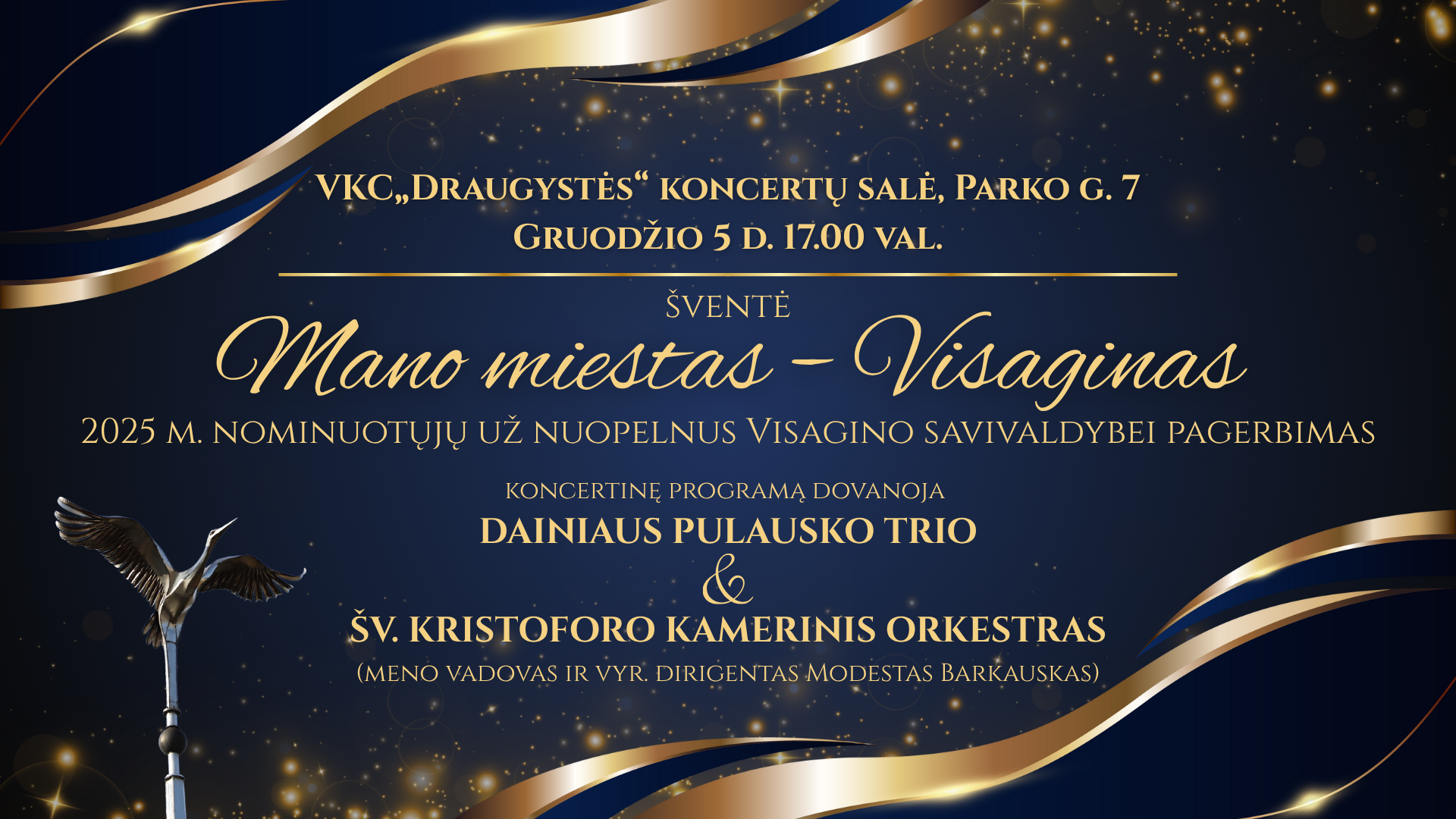Vakaro svečiams išskirtinę muzikinę programą dovanos Šv. Kristoforo kamerinis orkestras, Dainiaus Paulausko trio bei Visagino kūrybos ir menų akademijos ugdytiniai.
