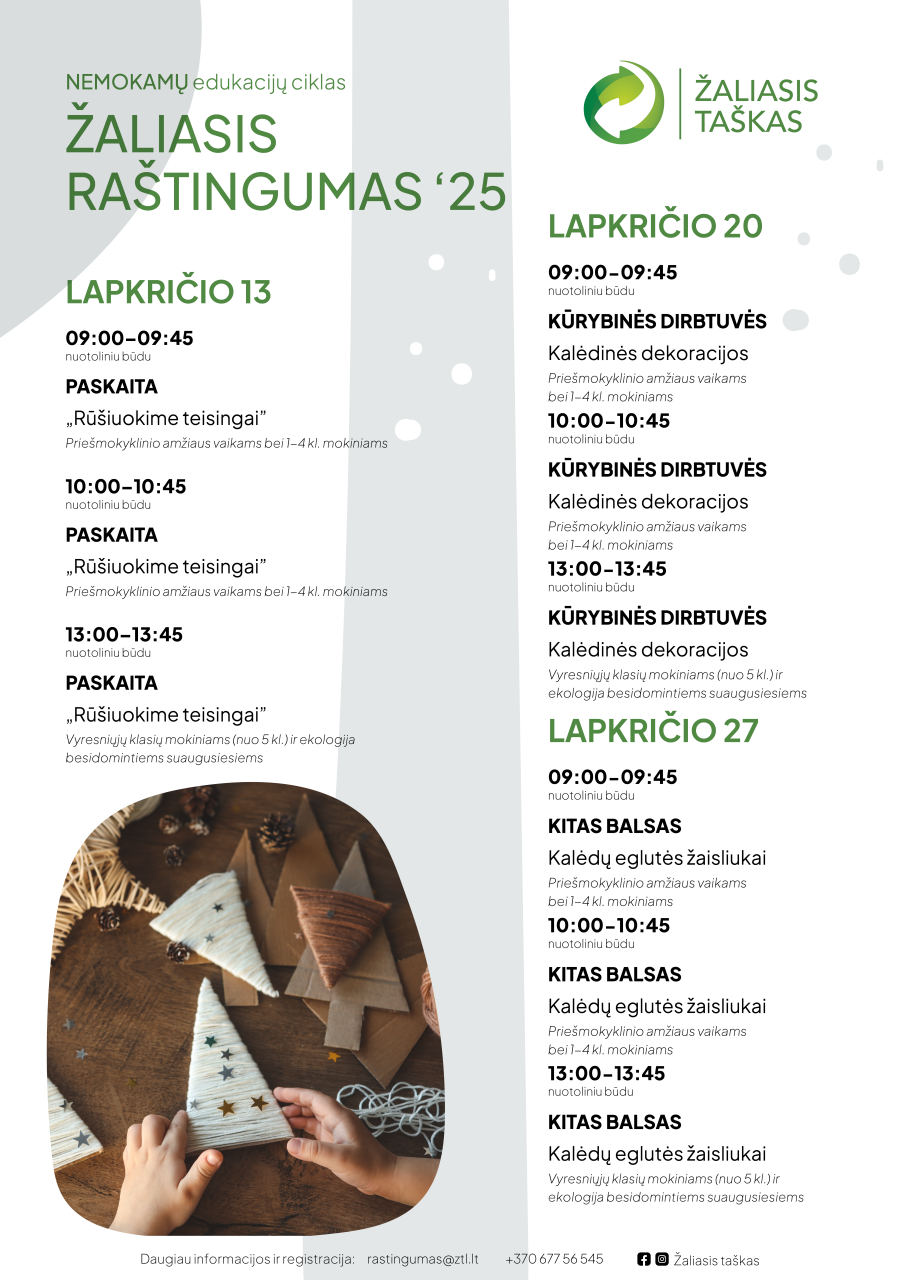 Daugiau informacijos rasite: Facebook Žaliasis taškas, kilus klausimams prašome kreiptis el. paštu rastingumas@ztl.lt arba tel. nr. 0 677 56545.